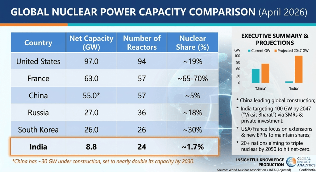 While oil remains the immediate concern, long-term energy autonomy rests on India’s Three-Stage Nuclear Power Programme. India holds some of the world’s largest thorium reserves (approximately 25% of the global total), yet it currently lags in commercial thorium utilization due to the extreme technical difficulty of breeding fuel.